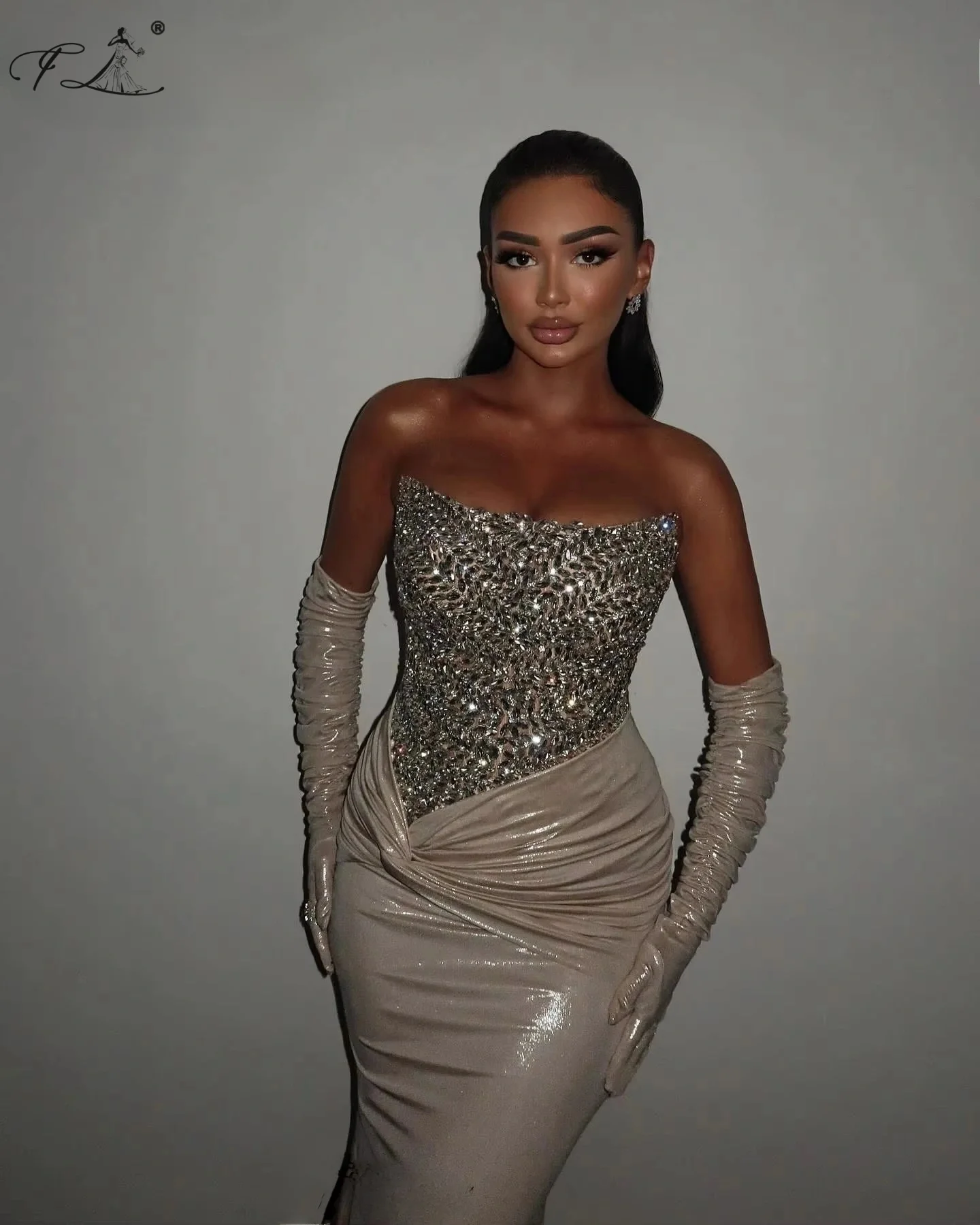 Simple Sexy Celebrity Dresses With Crystals Mermaid Strapless Cocktail Dresses Elegant Evening Party Dress For Women Customized