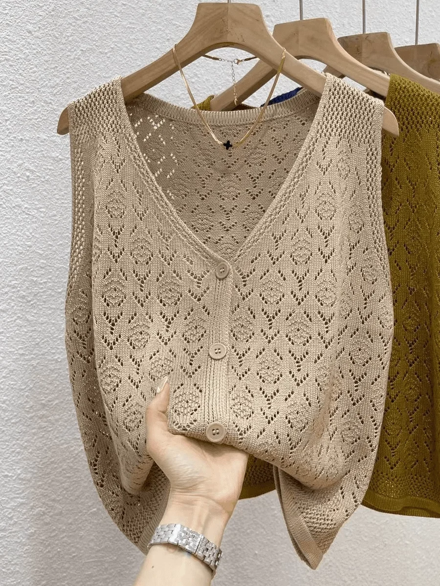 Summer 2025 New Style Artistic Vintage Hollow out Vest Loose V-Neck Sleeveless Fashionable Knitted Top Outerwear for Women