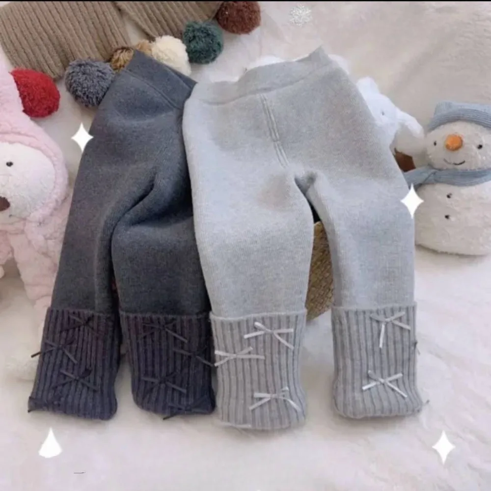 Winter fleece-lined and thickened Korean-style baby's sweet bow-tie versatile warm leggings, suitable for layering or wearing