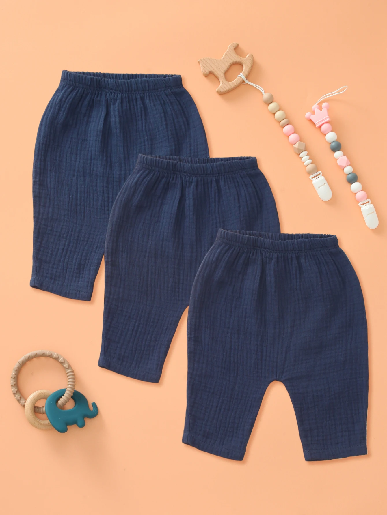 3 Pack Baby Pants, Toddler Pull on Sweatpant, Joggers Infant Leggings for 6M-3Y, Soft Cotton Babies Bottoms (Deep Blue)