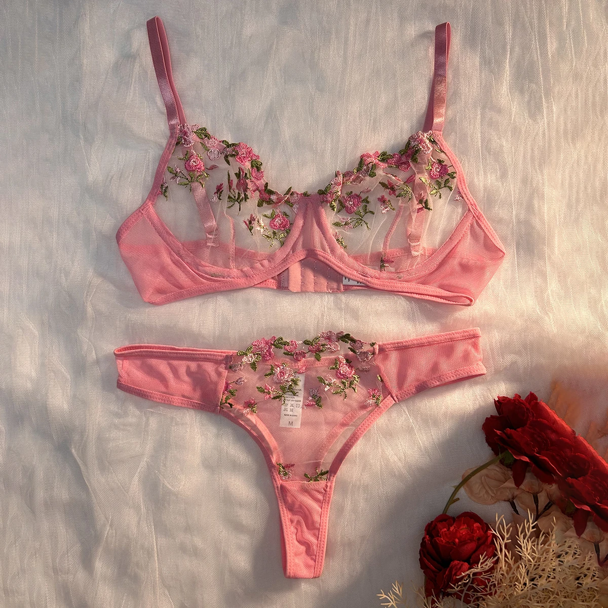 Summer Daily Sensual Lingerie Woman Lace Transparent Underwear Fairy Embroidery Brief Sets Delicate Bra Kit Push Up Sex Suit