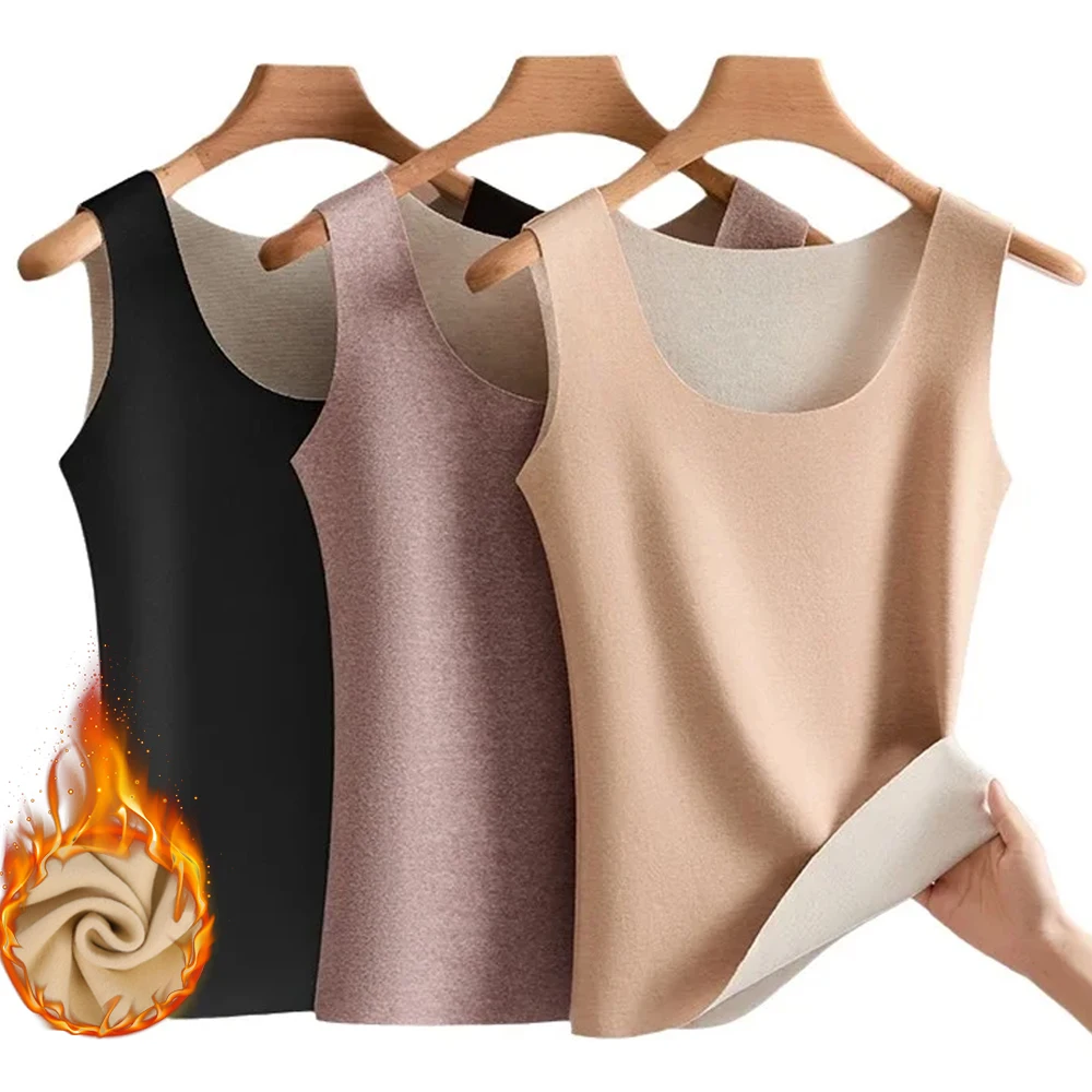 Thermal Tank Top Women's Fleece Lined Thermal Sleeveless Wide Shoulder Straps Warm Undergarment Winter Base Layer Clothing