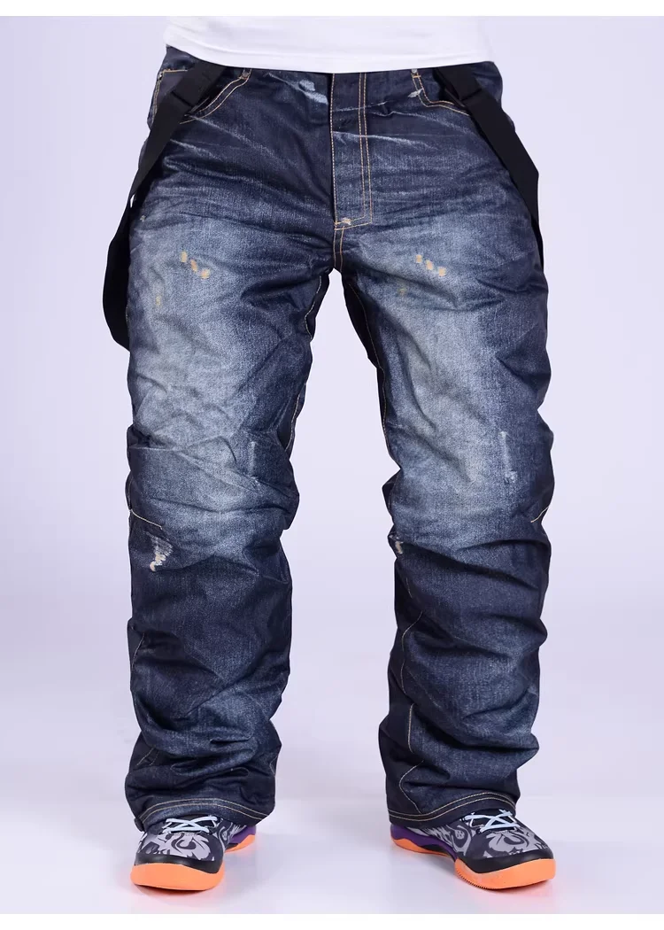 Outdoor Leisure Single And Double Board Denim Ski Pants Fo r Women Waterproof Loose An d Warm Men's S now Pants OT4