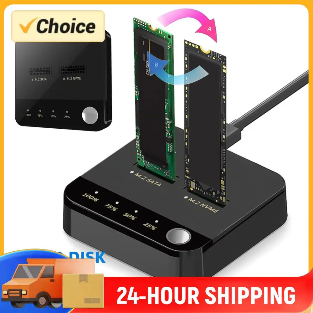 M.2 SATA/NVMe Dual-Bay Hard Drive Docking Station Offline Clone Docking Station Duplicator Data Transmission M.2 SSD Duplicator