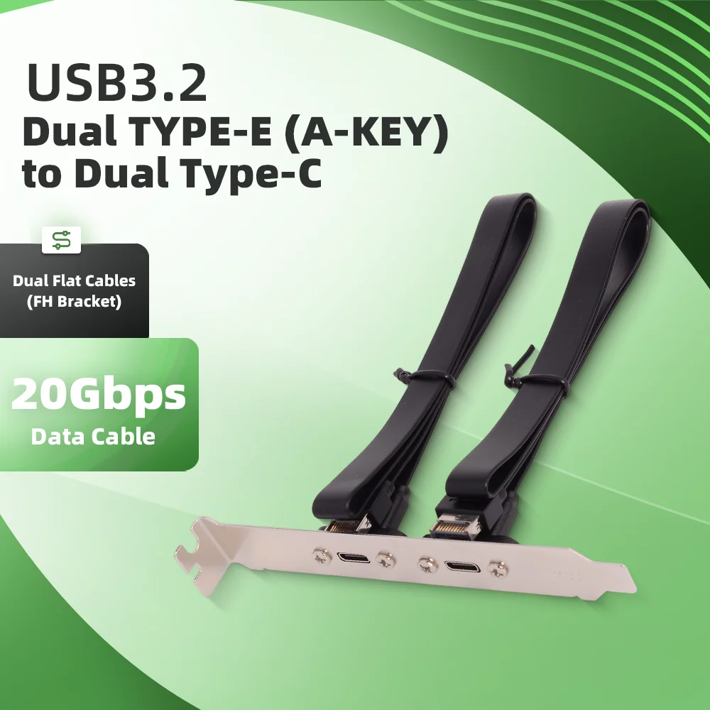 TYPE-E To TYPE-C USB 3.2 KEY-A To PCI Baffle Adapter CableFemale A Port Front Short 20G Flat Cable Chassis Bit 0.5M Cable