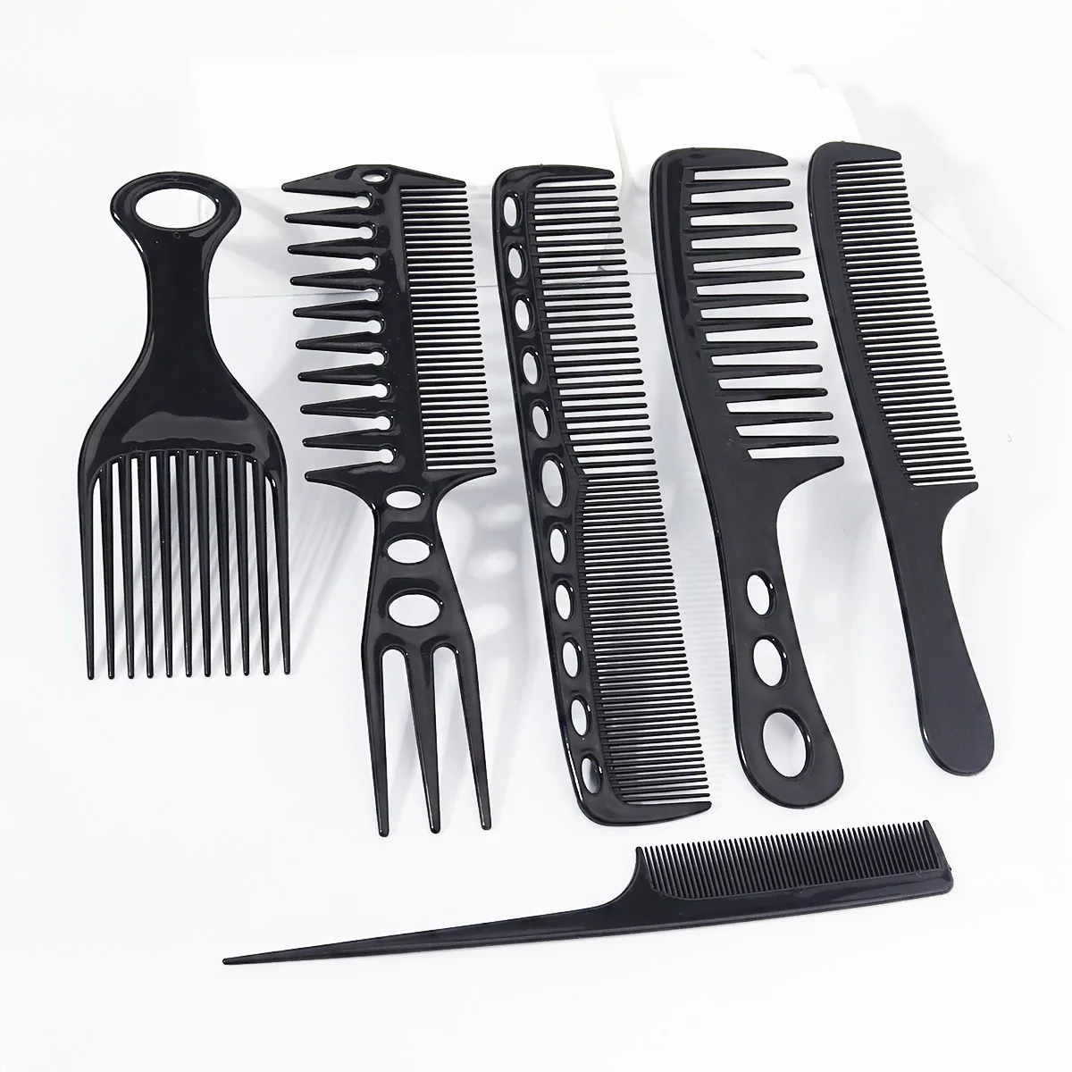 6pcs black hair comb set, hair comb pointed tail comb wide tooth comb African insert comb, men's and women's hair comb