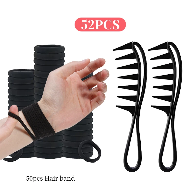 50/52/53Pcs Hair Comb Set Including 50Pcs Elastic Hair Bands & Wide Tooth Comb for Wet Curly Wavy Thick Long Hair and Wigs