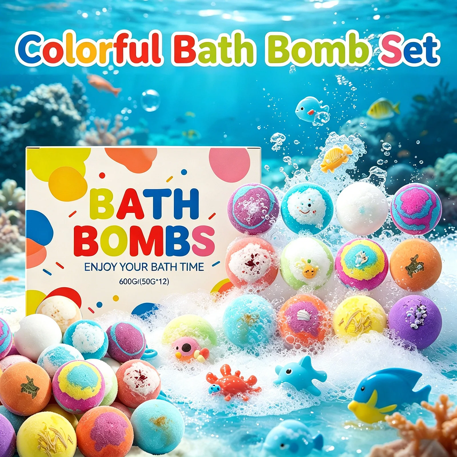 12pcs Kids Bath Bombs Set with Surprise Toys Inside Natural Organic Bubble Bath Fizzies Balls Gift for Children Holiday Gift Set
