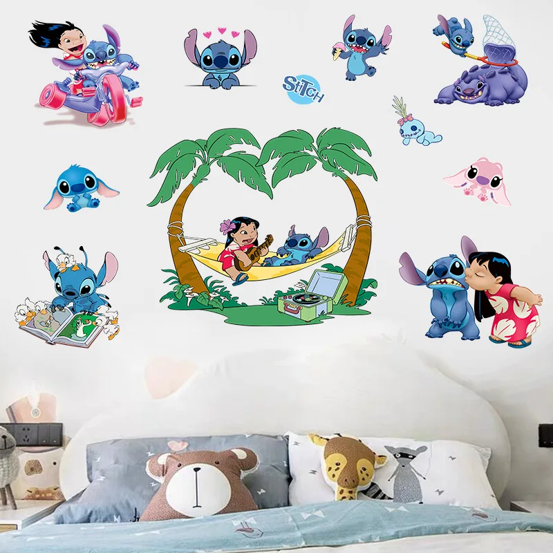 Cartoon Lilo & Stitch Wall Stickers Shopping Mall Glass Showcase Kindergarten Children's Room Festival PVC Decoration Stickers