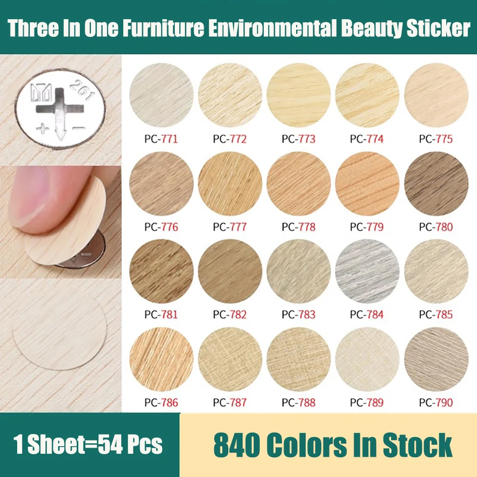 54Pcs /21mm Wooden Furniture Self Adhesive Screw Cap Cover Hole Stickers Wood Craft Desk Cabinet Drawer Art Sticker Ornament