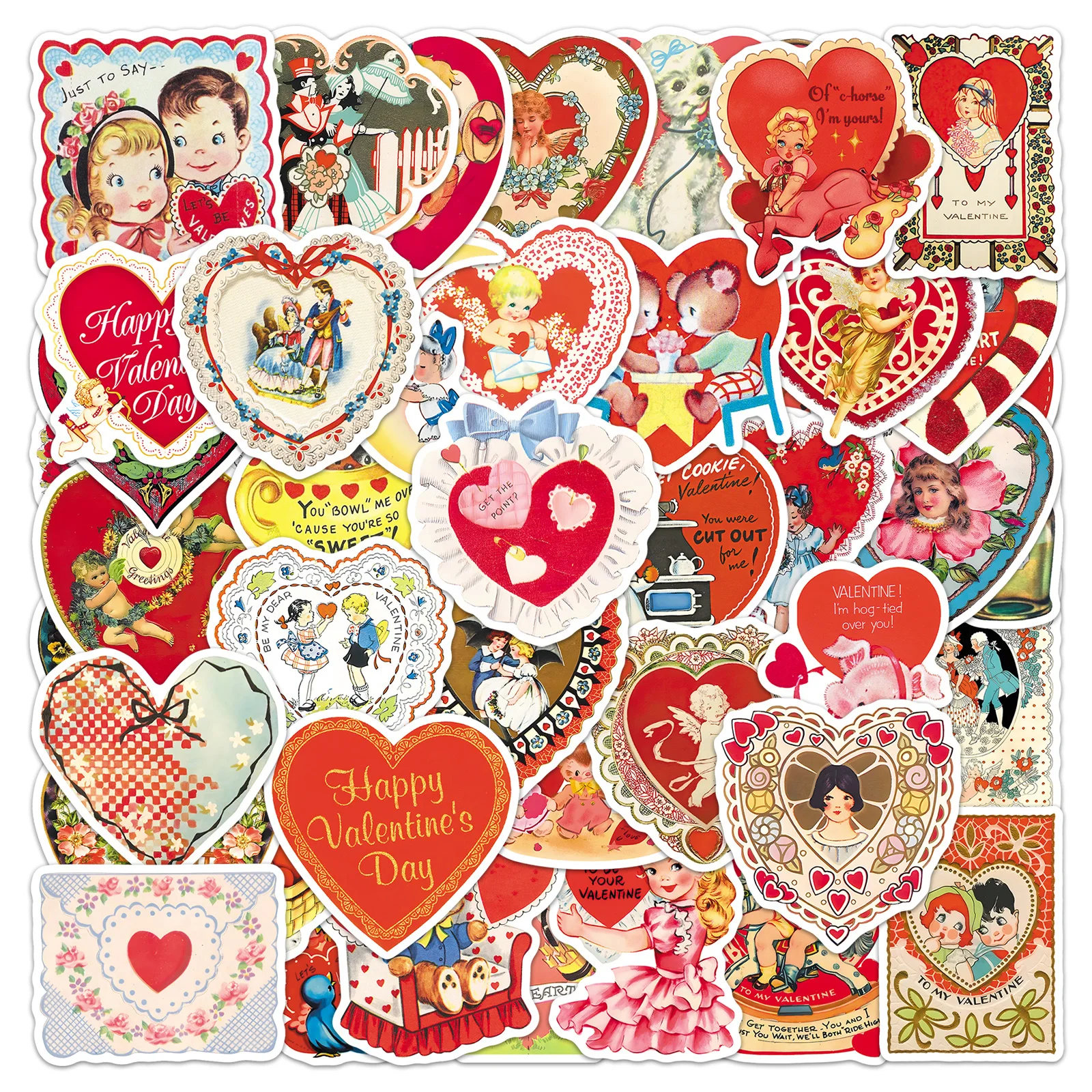 50Pcs Cute Retro Valentine's Day Waterproof Sticker Skateboarding Retro home decal Sticker