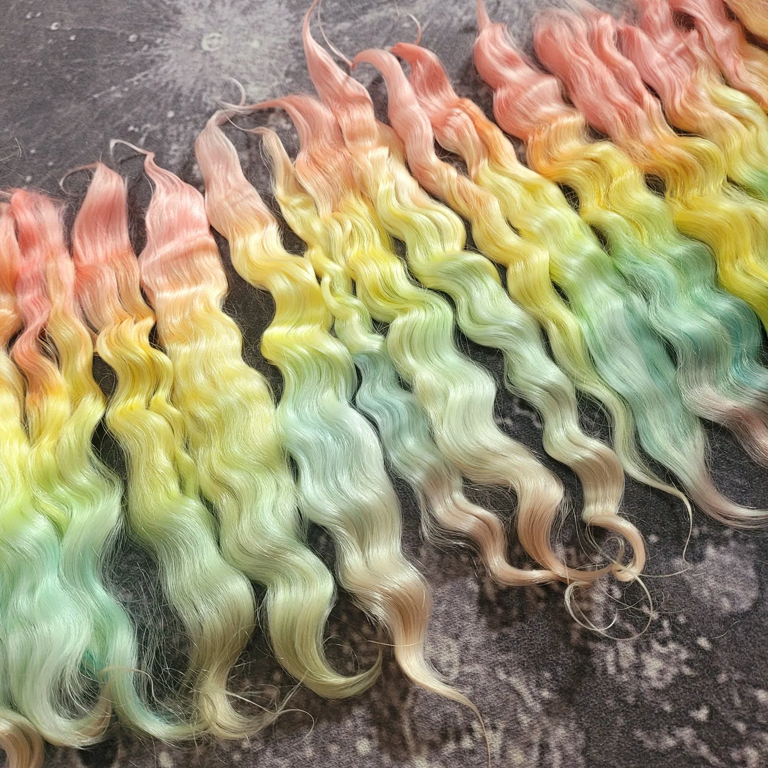 5g/10glot rainbow color mohair combed Russian Angora wool wig curly for toys diy
