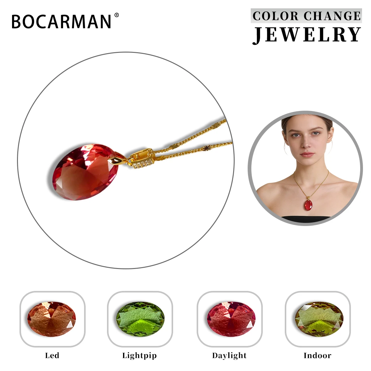 Sultanite Stone color-changing stone oval pendant light for women's daily wear different light sources show different colors