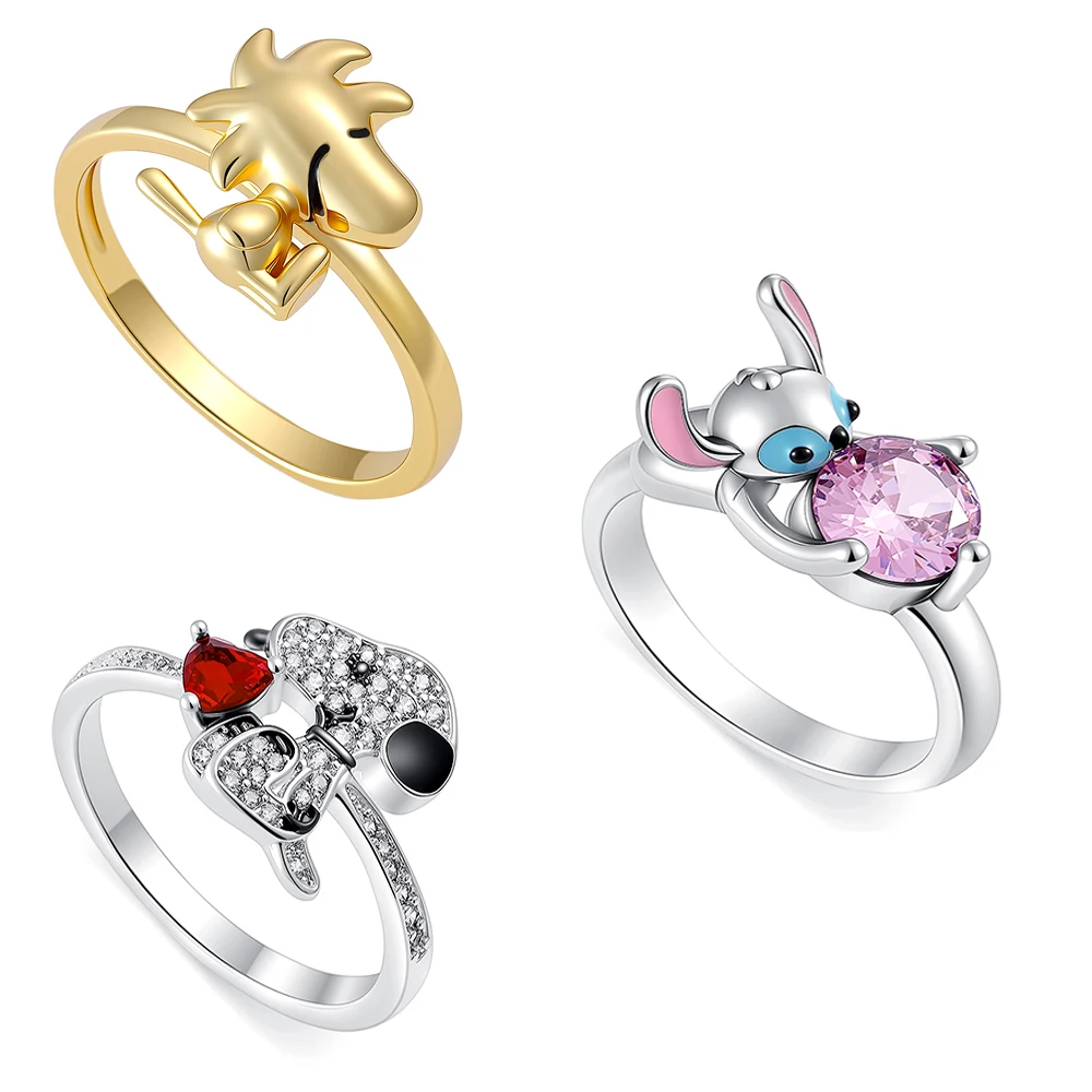 Original 925 Sterling Silver Miniso Disney Snoopy Crown Rings Sparking Zirconium Unique Anniversary Jewelry Gifts