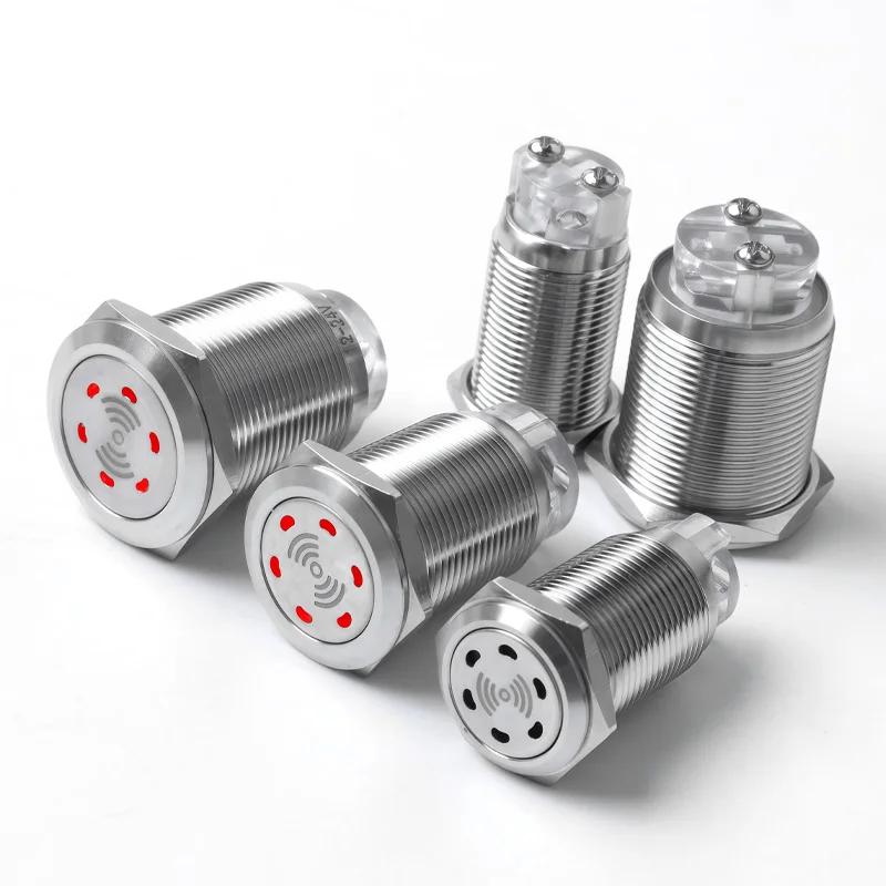 Metal Buzzer 16mm19mm22mm Flash LED Alarm Indicator Light Signal Lamp Flashing metal Buzzer Intermittent Sound DC12-24V