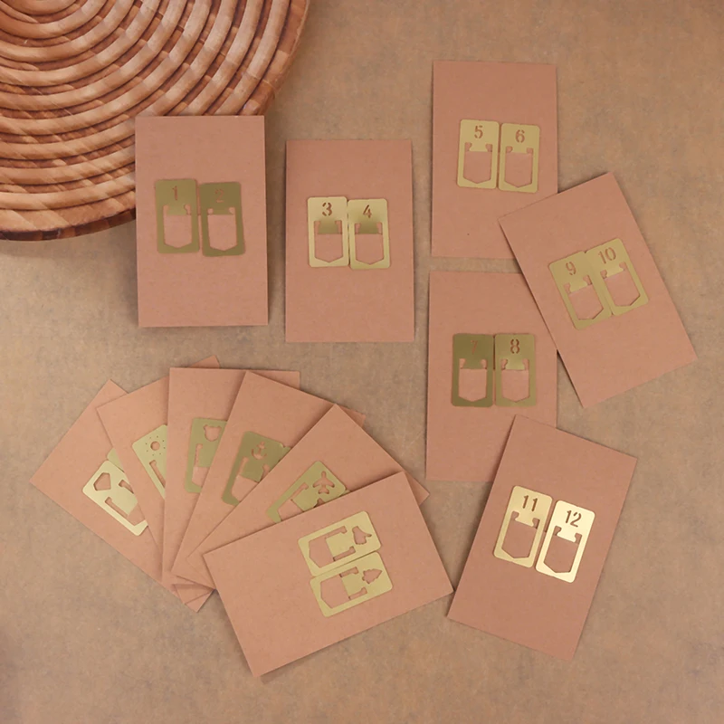 12pcs Copper Bookmark Retro Brass Metal Bookmarks For Midori Traveler's Notebook Monthly Planner Accessories Vintage Stationery