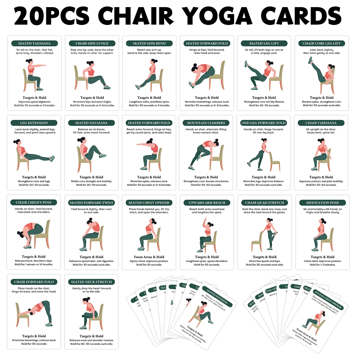 20pcs Chair Yoga Cards,Step Pose Guide Seated Exercise Deck For Home,Office&Rehab,Wellness Programs,Yoga Class Activities Gifts