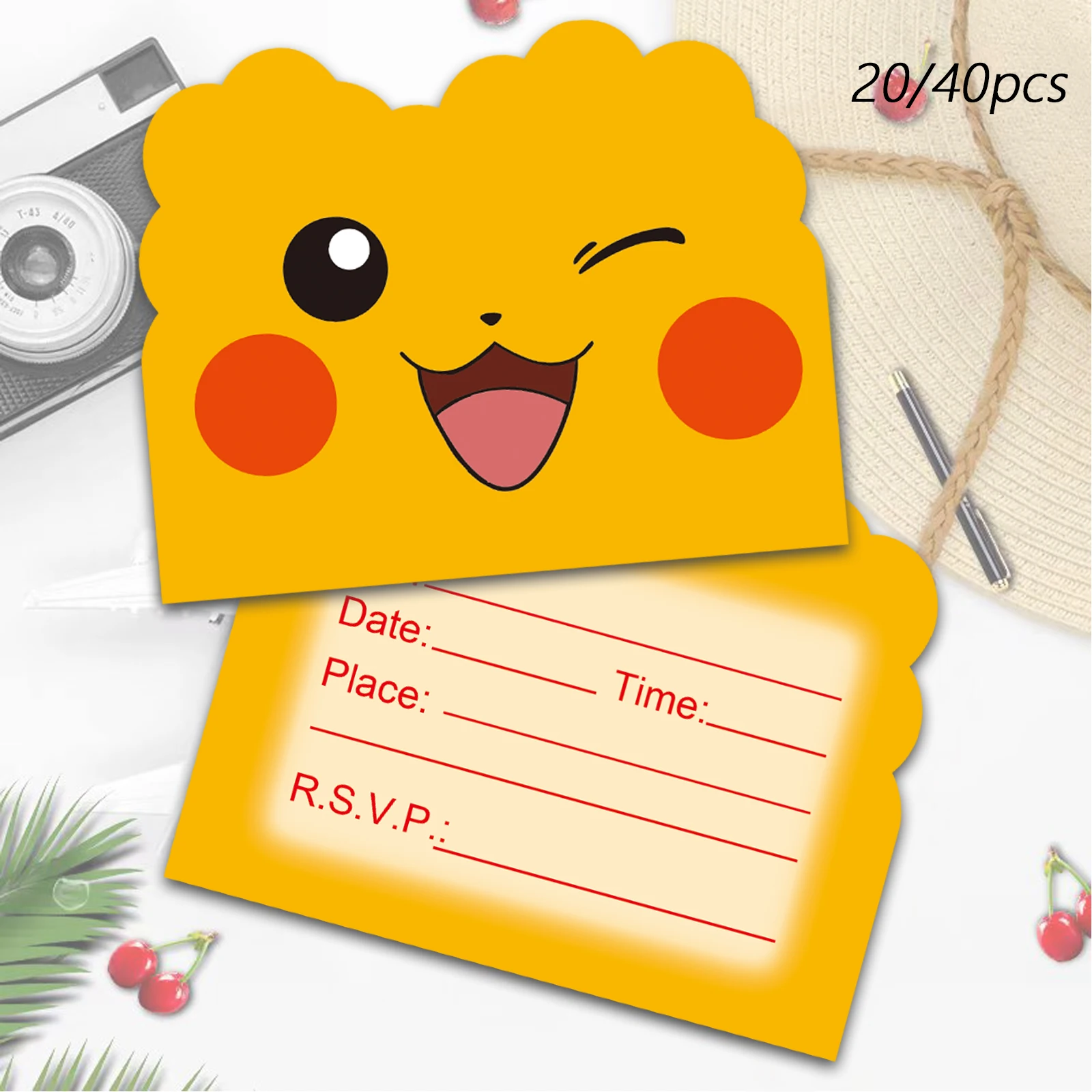 20/40pcs Pokémon Birthday invitation cards,Pokémon Party decorations,Pikachu Party supplies,Pikachu Friends invitation cards