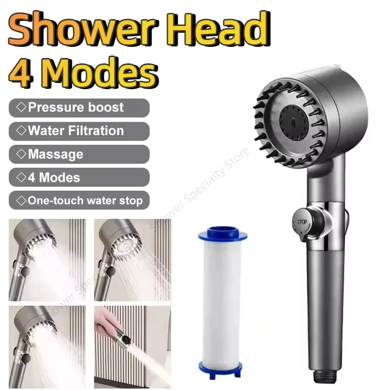 High Pressure Shower Head 4 Modes Water Saving With Filter Adjustable Spray With Massage Bathroom Shower Accessories New