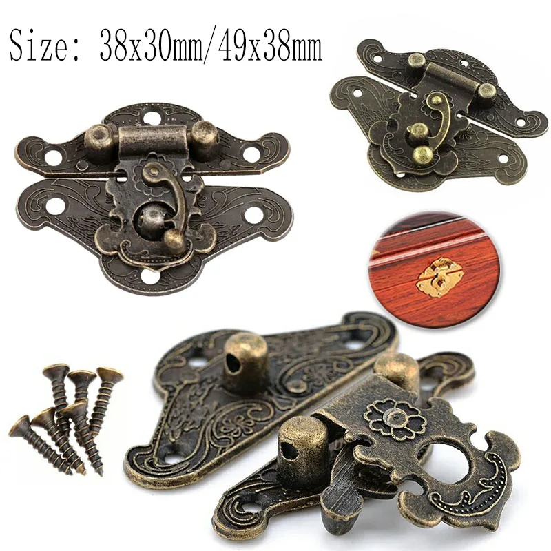 5/10pcs Vintage Metal Hardware Furniture Wooden Box Leather Bag Hardware Decorative Latch Clasps Lock Padlock Hasp With Screws