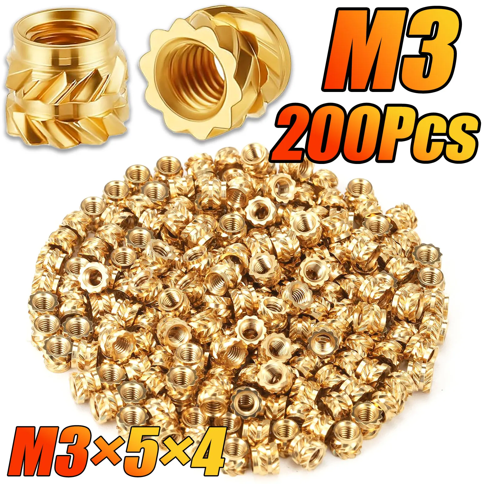 200Pcs Heat-Set Threaded Inserts, M3 Heat Set Insert for 3D Printing Components and Plastic Parts - Brass Metric Knurled Nuts