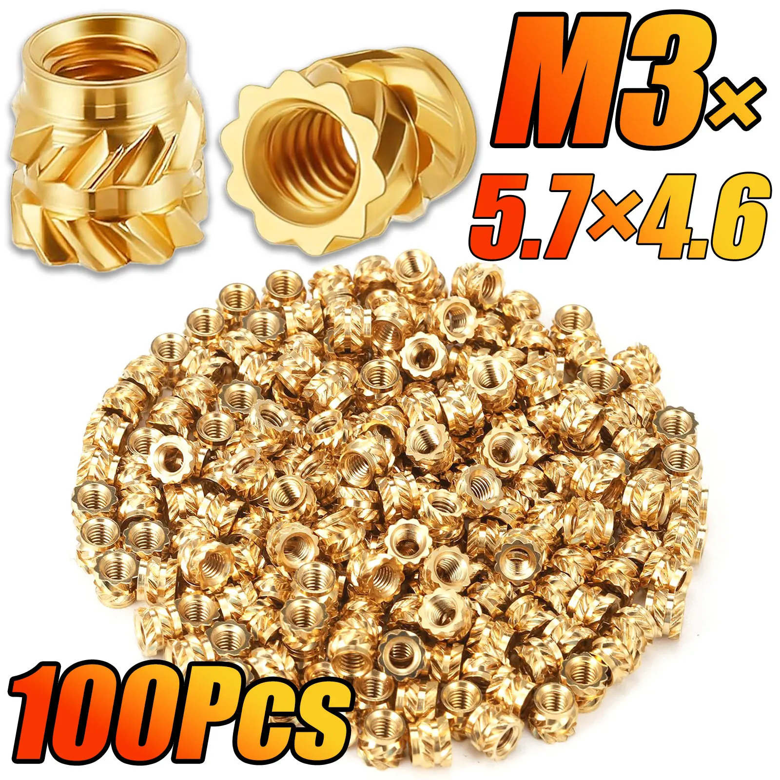 100Pcs M3 Brass Threaded Inserts Heat Set Insert for 3D Printing Plastic Components M3x5.7x4.6mm Metric Knurled Nuts,