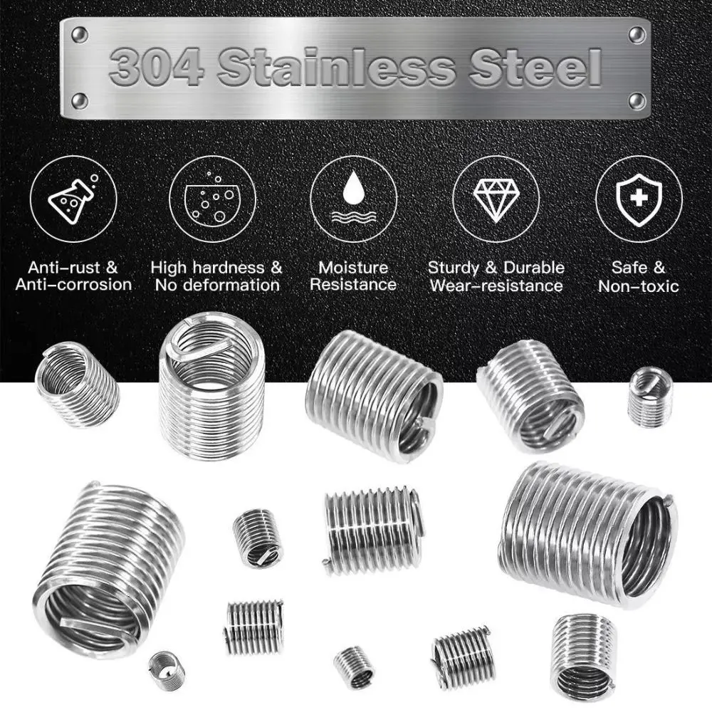 Stainless Steel Wire Thread Insert Durable Helical Thread Screw Sleeve Coiled Wire Spiral Wire Thread Repair Kit