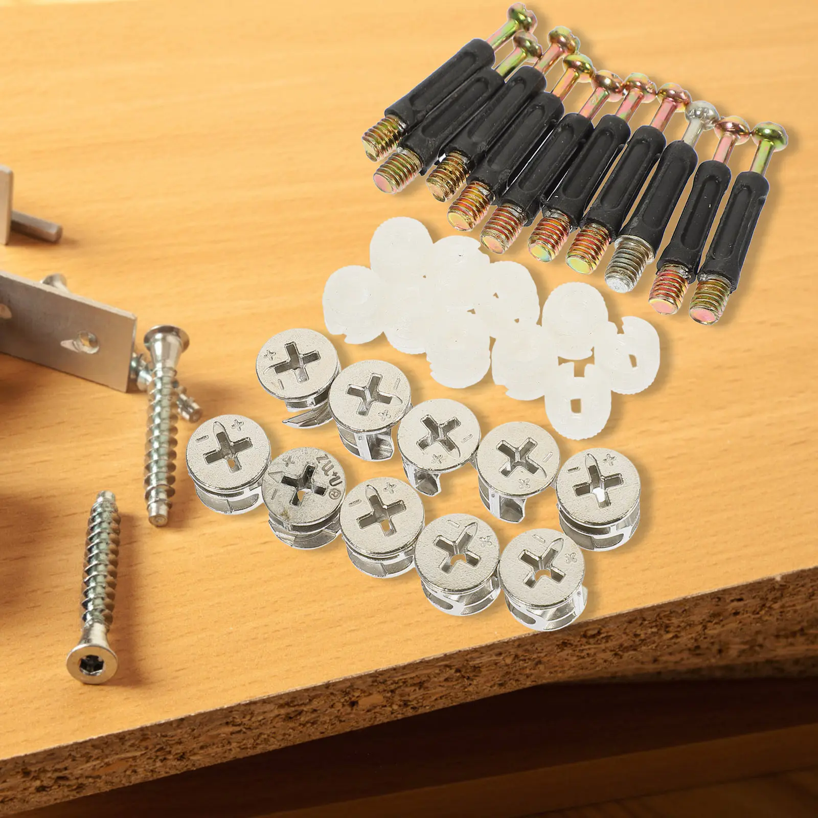 10Sets Furniture Connectors Sturdy Screw-in Insert Nuts for Drawer Cupboard Wood Furniture Cam Fittings Pre-Inserted Dowels