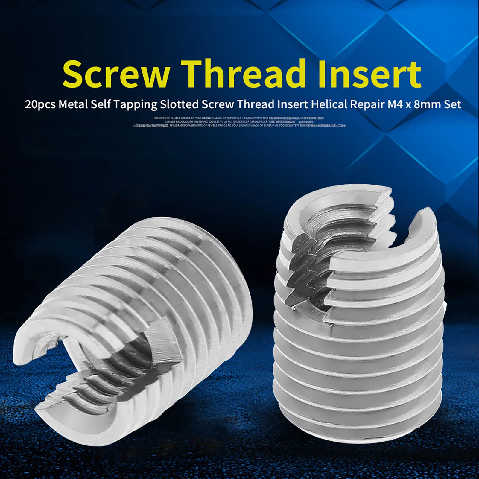 Screw Thread Insert Self Tapping Screw Insert Metal Self Tapping Slotted Screw Thread Insert Helical Repair M4 x 8mm Set