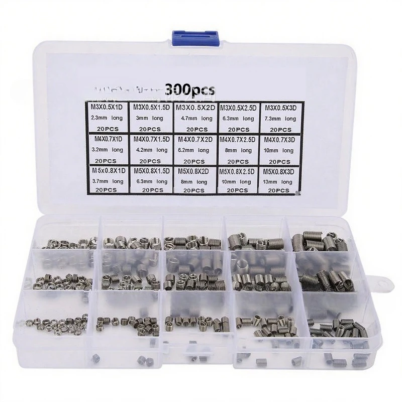 300pcs Wire Screw Threaded Insert Stainless Steel Threaded Bushing Sleeve Helicoil Thread Repairing Tool M3x0.5/M4x0.7/M5x0.8