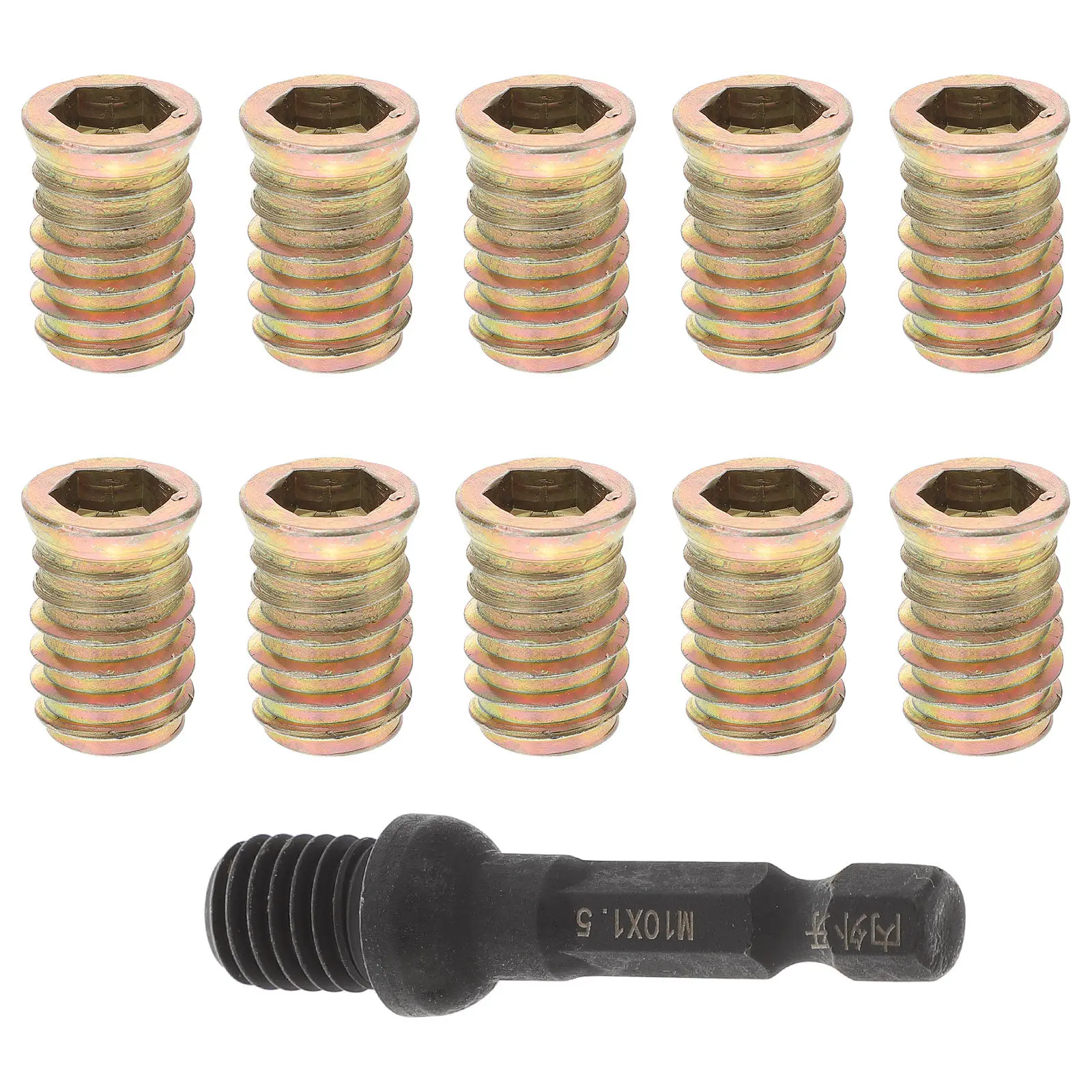 10Pcs Threaded Wood Inserts Fastener Premium Carbon Steel Threaded Inserts Nuts for Wood Furniture Strong Sturdy Reliable Long