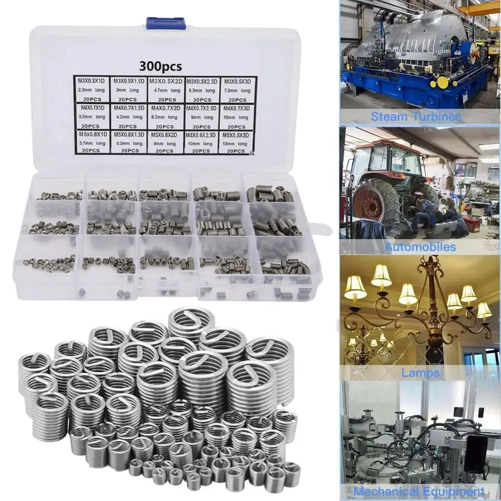 200Pcs M3-M12 Thread Metric Thread Repair Insert Assortment Set Thread Inserts Insert Fasteners Hardware Screw Repair Tool Parts