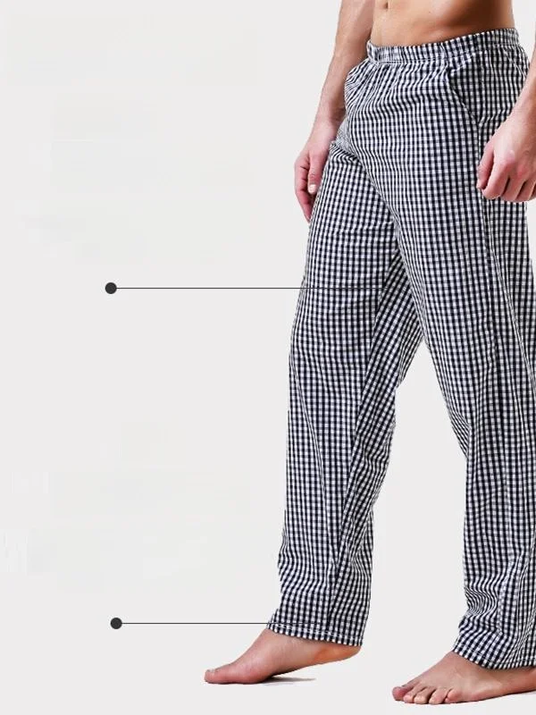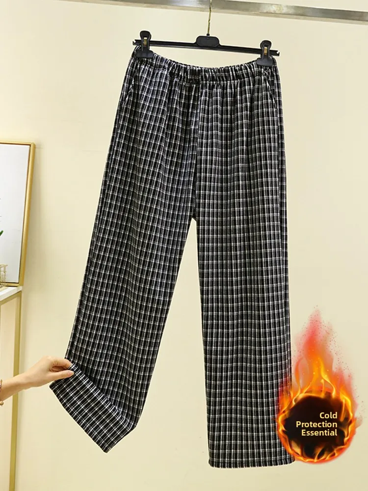 Men's Plaid Flannel Pajama Pants Loose Fit Straight Leg Long Trousers Winter Home Clothes High Waist Elastic Waisand