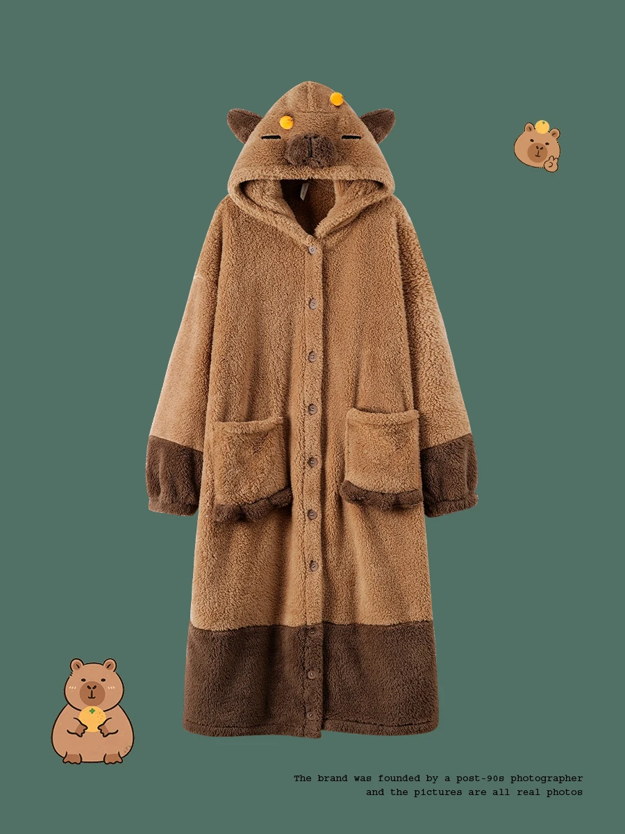 Double Sided Velvet Hooded Sweater Thi Wearable Winter Couple's Clothing Cozy Home Wear Spwear Batobe Robe