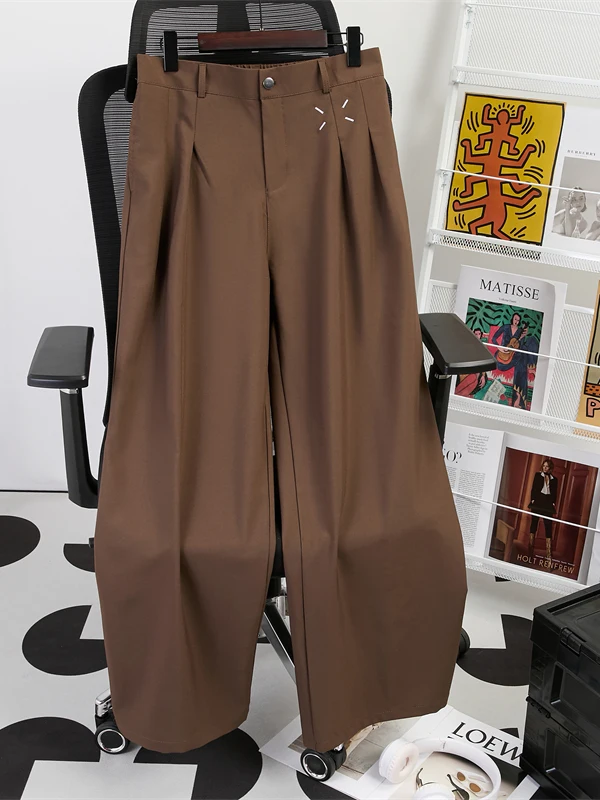 Men's Breathable Casual Trendy Simple Basic Solid Color Loose Wide Leg Straight Suit Trousers Four Seasons Male Pants Clothes