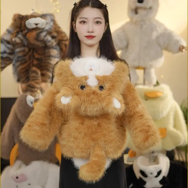 Winter Parent-Child Style Cartoon Cotton-Padded Jacket Child Cat Fleece-Lined Keep Warm Cute Eco Fur Coat Outdoor Hooded Tops