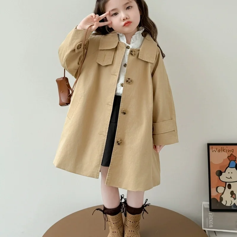 Girls Trench Coat Fashionable Girl Coat Loose Jacket Kids Coats Baby Girl Clothes Kawaii Clothes Пальто Для Девочки Плащ Детский