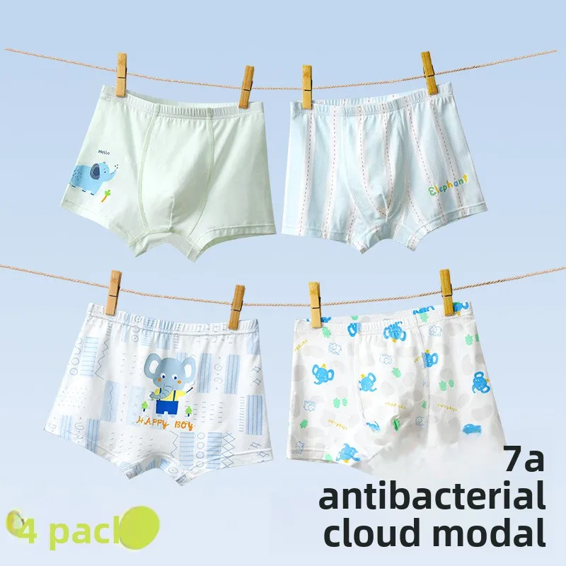 4 Pack Boys Modal Boxer Briefs 7A Antibacterial Comfortable Underwear for Kids Teens Students