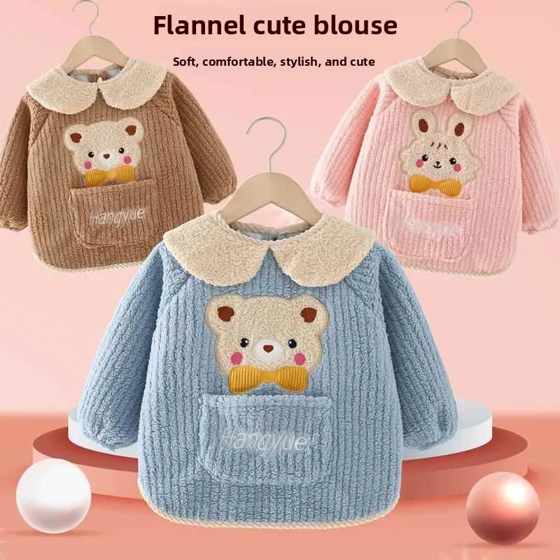 Thiened Fce Child Eating Apron Waterproof Dir Proof Long Sve Autumn Winter Sle Baby Feeding Smo Cartoon Polyester