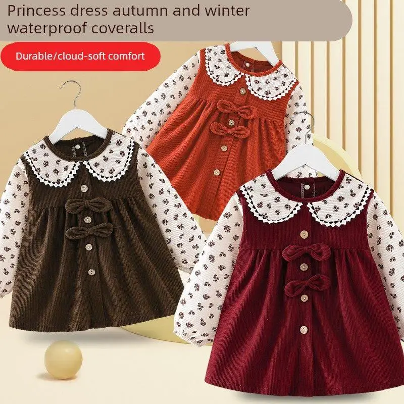 Princ Sle Corduroy Apron for Girls Baby Girl Eating Bib Waterproof Dir Proof Autumn Winter Children's Reverse Clothing