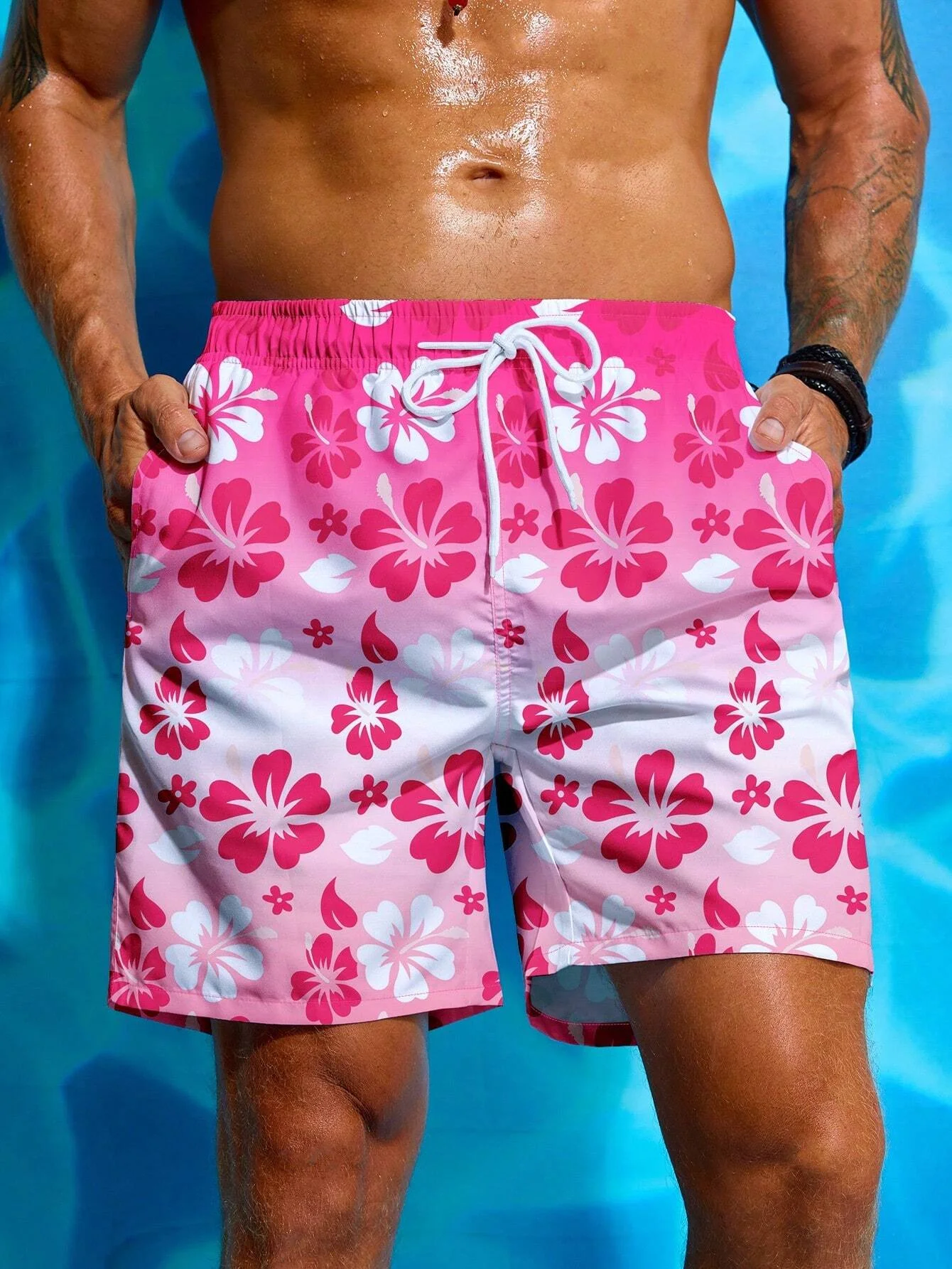 Floral Gradient 3D Print Board Shorts Men Oversized Surfing Drawstring Beach Sports Pants Swimwear Swimsuits Trunks Man Clothing