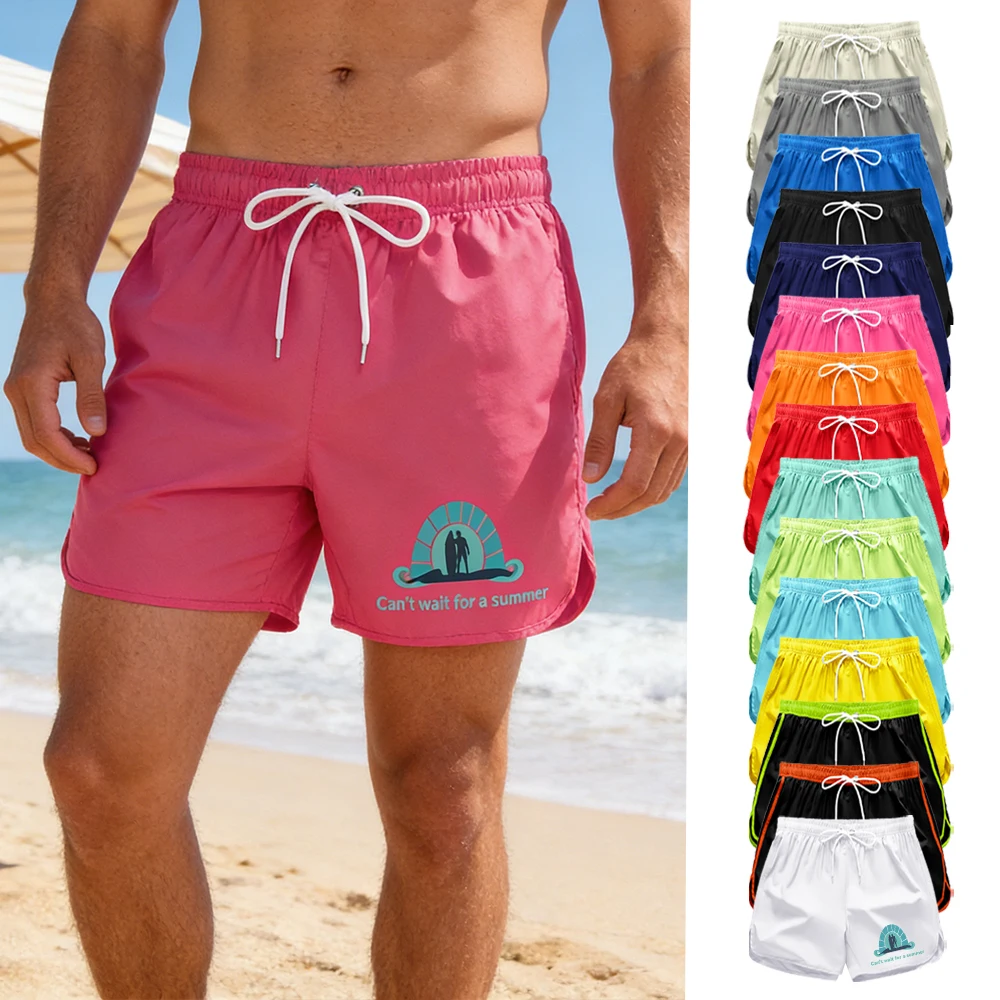 Summer Casual Men's Quick Drying Board Shorts Elastic Waist Drawstring with Pockets Swimwear wit "Can't wait for a summer" Print