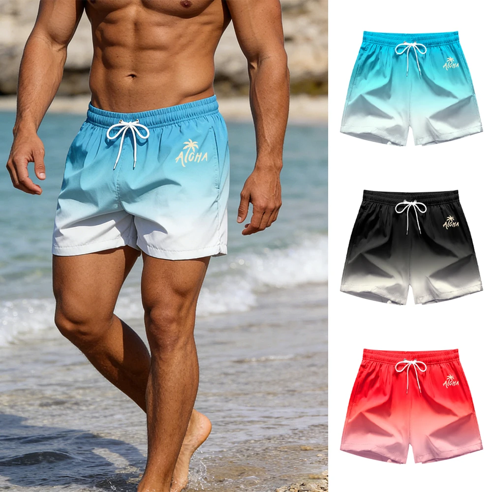 Men's Gradient Print Beach Shorts Fashionable Printed Swim Trunks Swimwear Suitable For Summer Beach Vacation Swimming Surfing