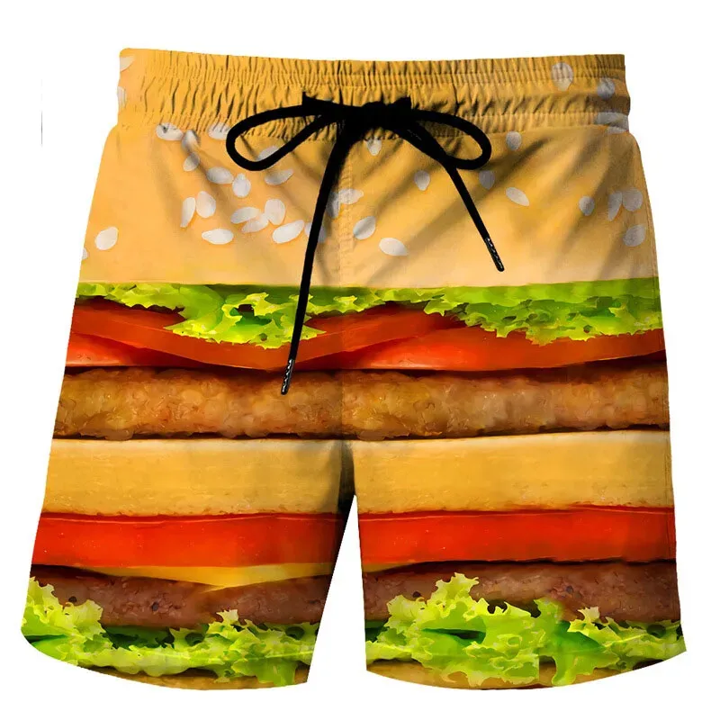 Funny Food Hamburger 3D Print Beach Shorts Men Women Fashion Oversized Surfing Board Sport Pants Swimsuits Trunks Kid Clothing