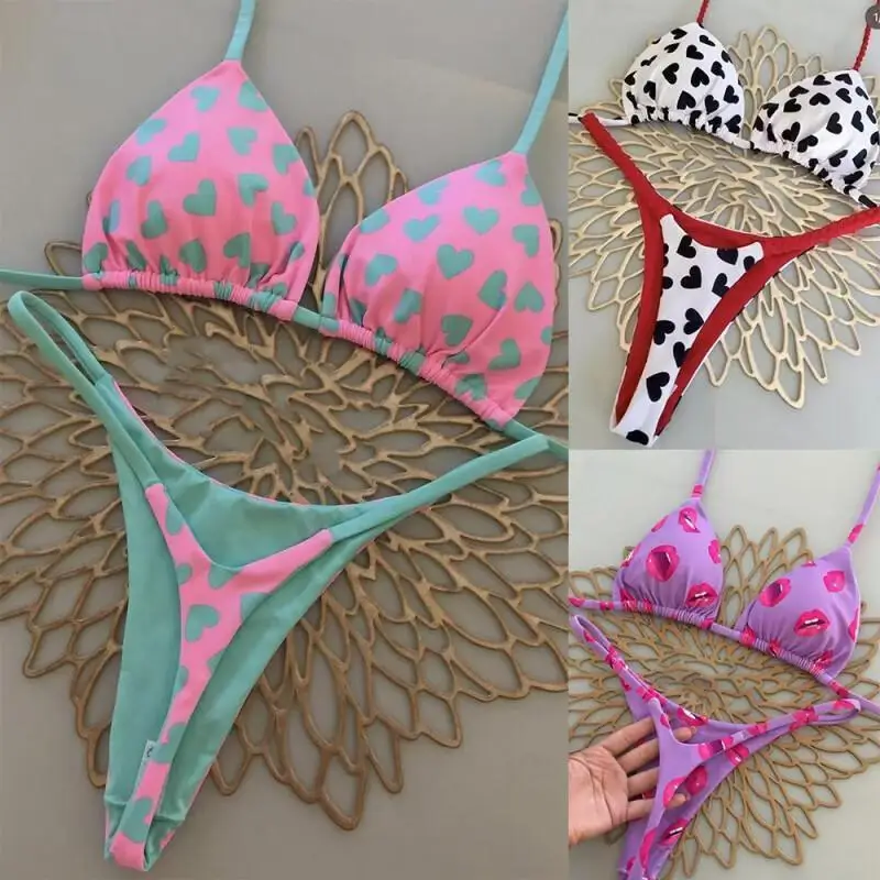 Hot Bikini Swimsuit Printed for Women Beach Swimming Sexy Cartoon Print European American Three Point Cross Border In Stock Cute