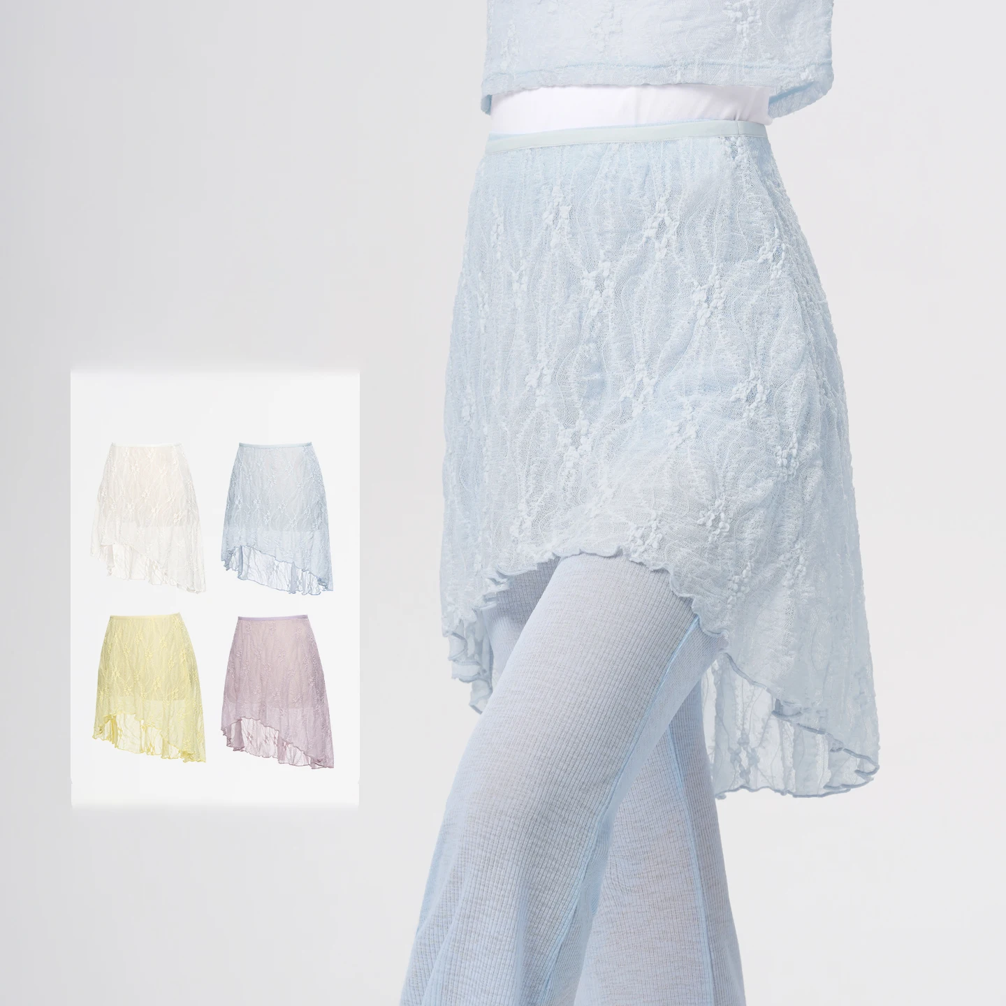Adult Nylon Sheer Tulle See-through Soft Lace Dance Skirt Women Elegant Irregular Hem Knit Short Dress Gymnastics Yoga Costumes