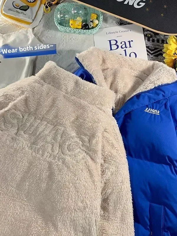 Metersbonwe Men's Women's Stand Collar Loose Cotton-Padded Jacket Solid Color Simple Couple Warm Wear Adjustable Hem Drawstring
