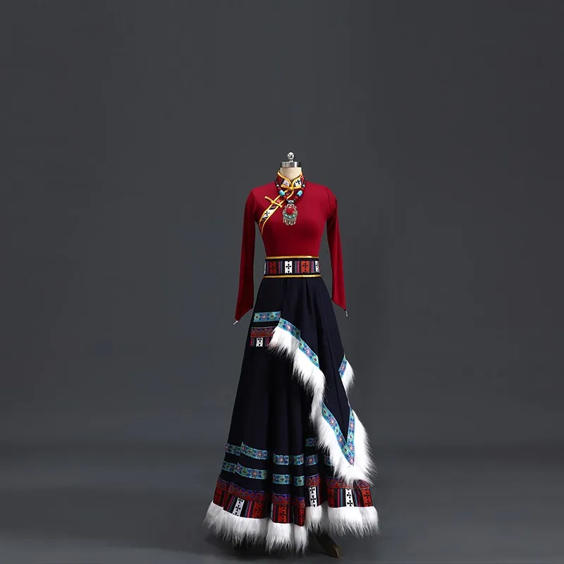 Tibetan Dance Skirt Women's f-length Skirt with Wide Swing for Performance And Practice Tibetan Sle Dance Cetition