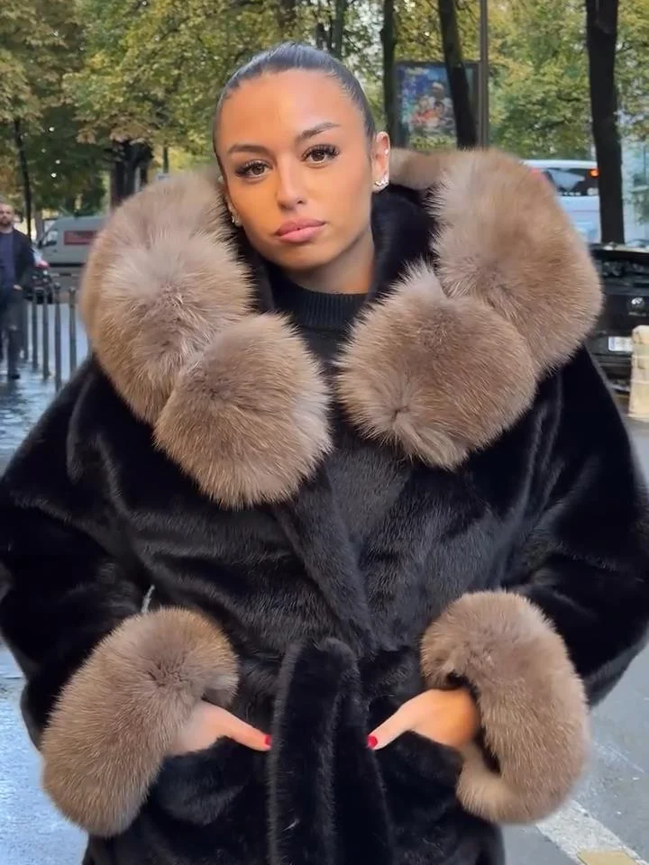 2023 Winter Casual Loose Long Wool Jacket With Hood Natural Fox Fur Plus Size Long Sleeve Hooded Cashmere Caot Outwear Female