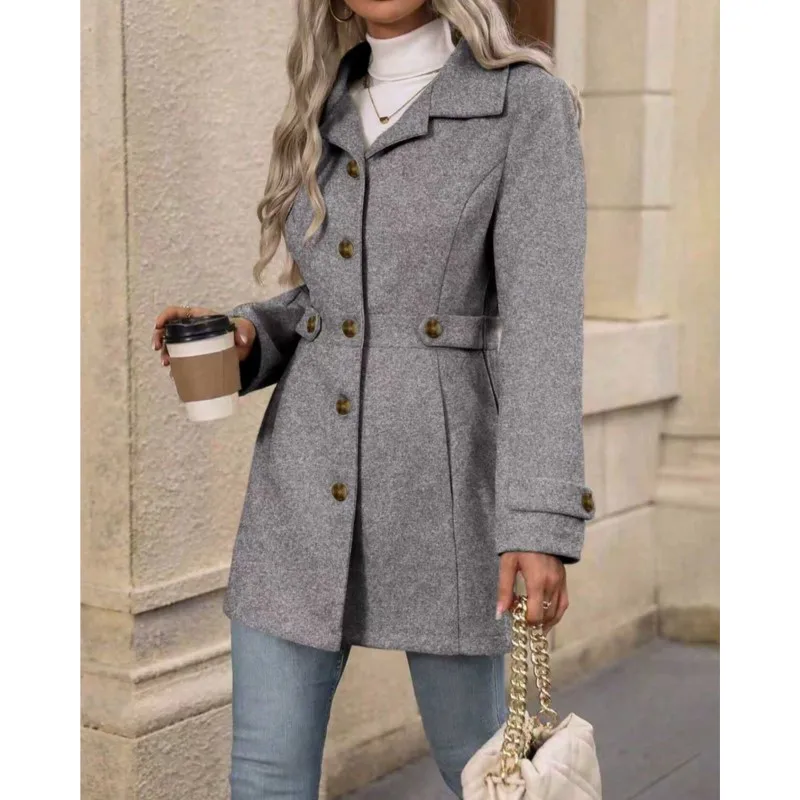 Autumn/Winter New Women's Casual Coat Fashion Flattering Loose-Fit Notched Lapel Single-Row Multi-Button Mid-Length Wool Blazer